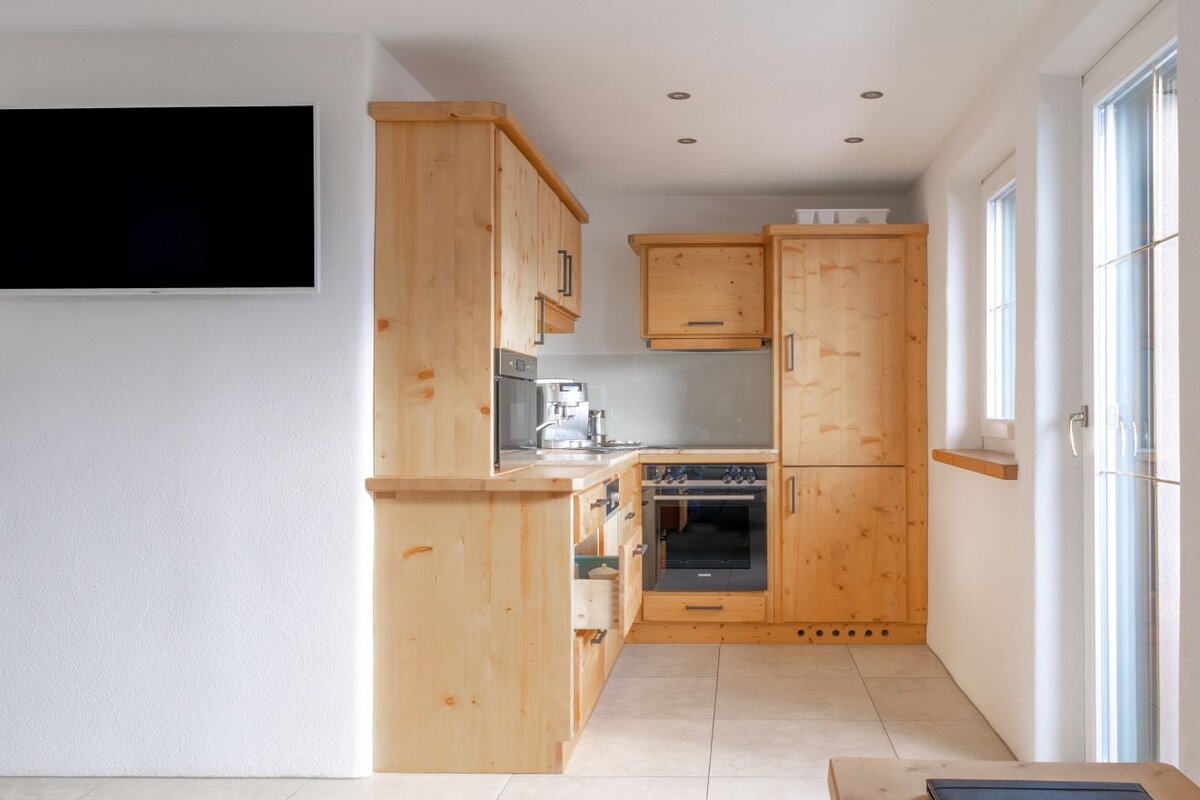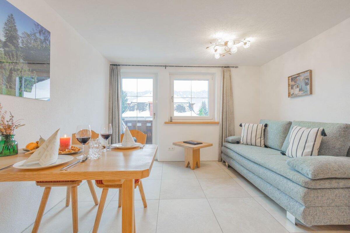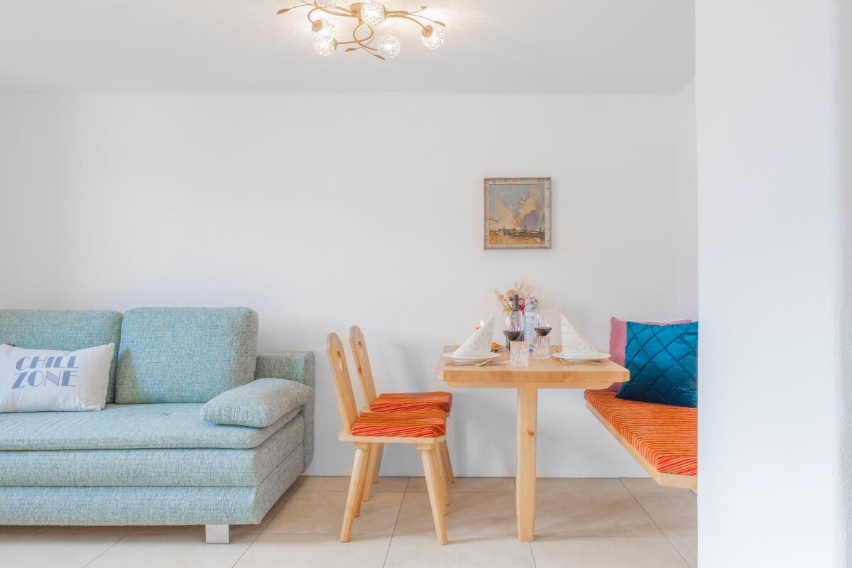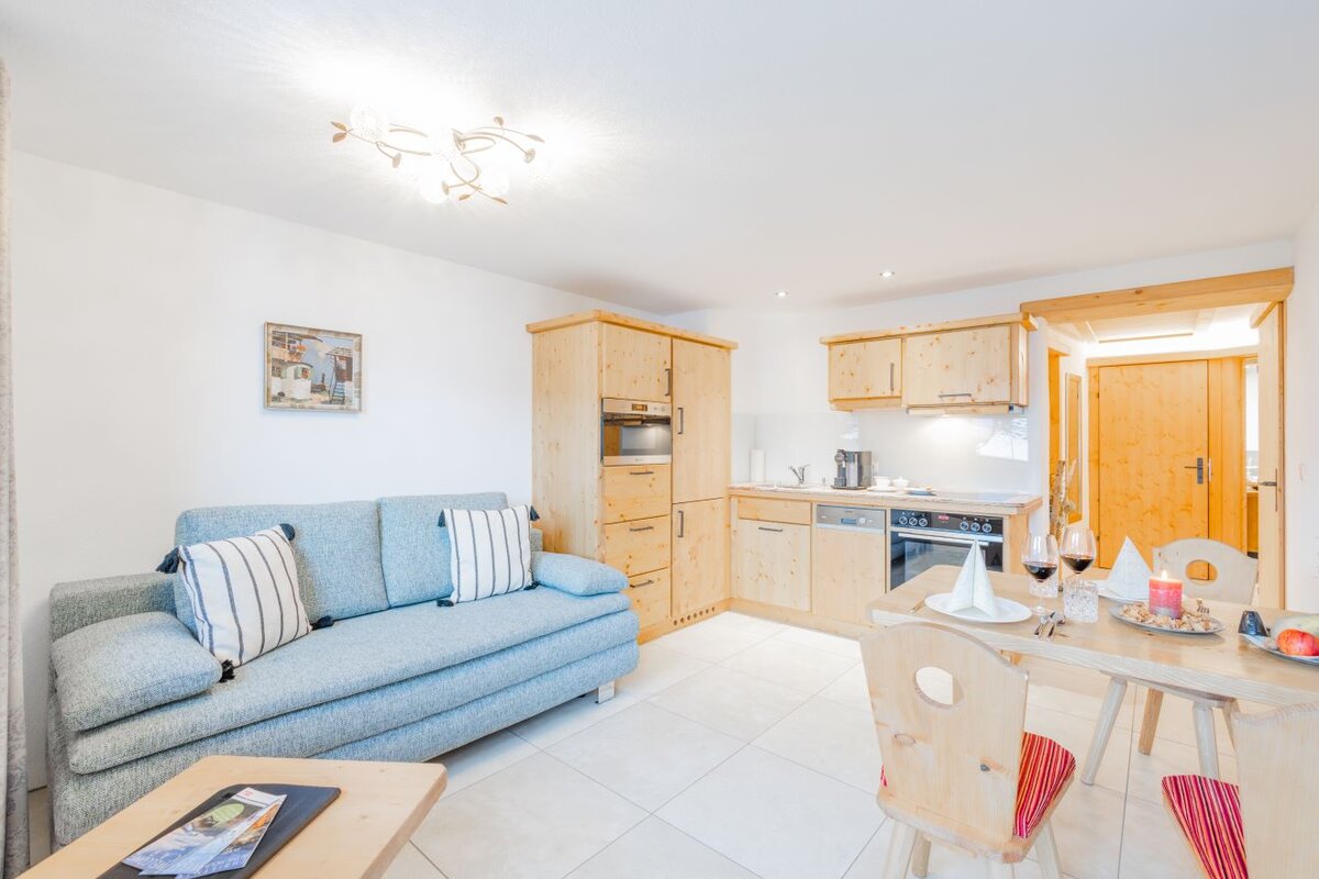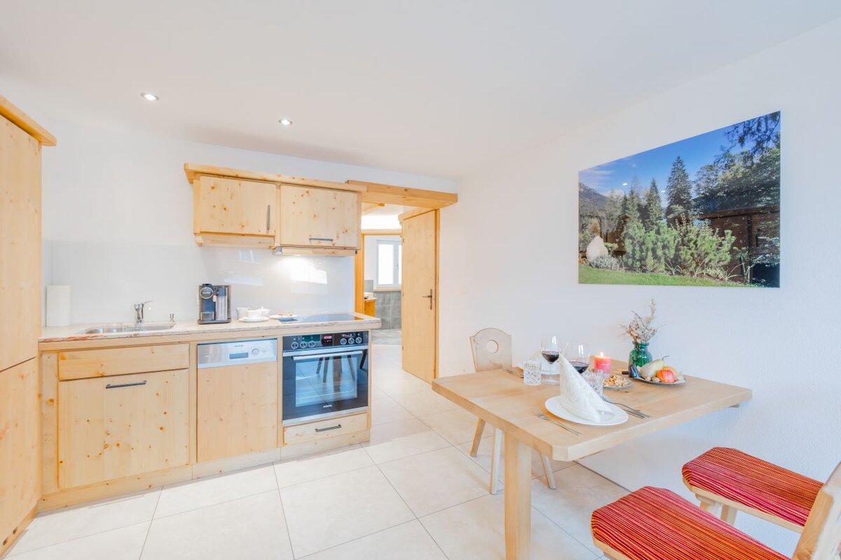 Our modern equipped apartments offer a homely retreat. The cozy apartments are furnished with natural wood furniture, modern bathrooms and high-quality textiles. In addition to the convivial living rooms with modern kitchen and open dining and living area, each apartment also has a private, furnished outdoor area as a balcony - the perfect setting for special moments that will be remembered. For relaxation you can enjoy our sauna area with additional infrared and color light therapy, rain shower and relaxation loungers.